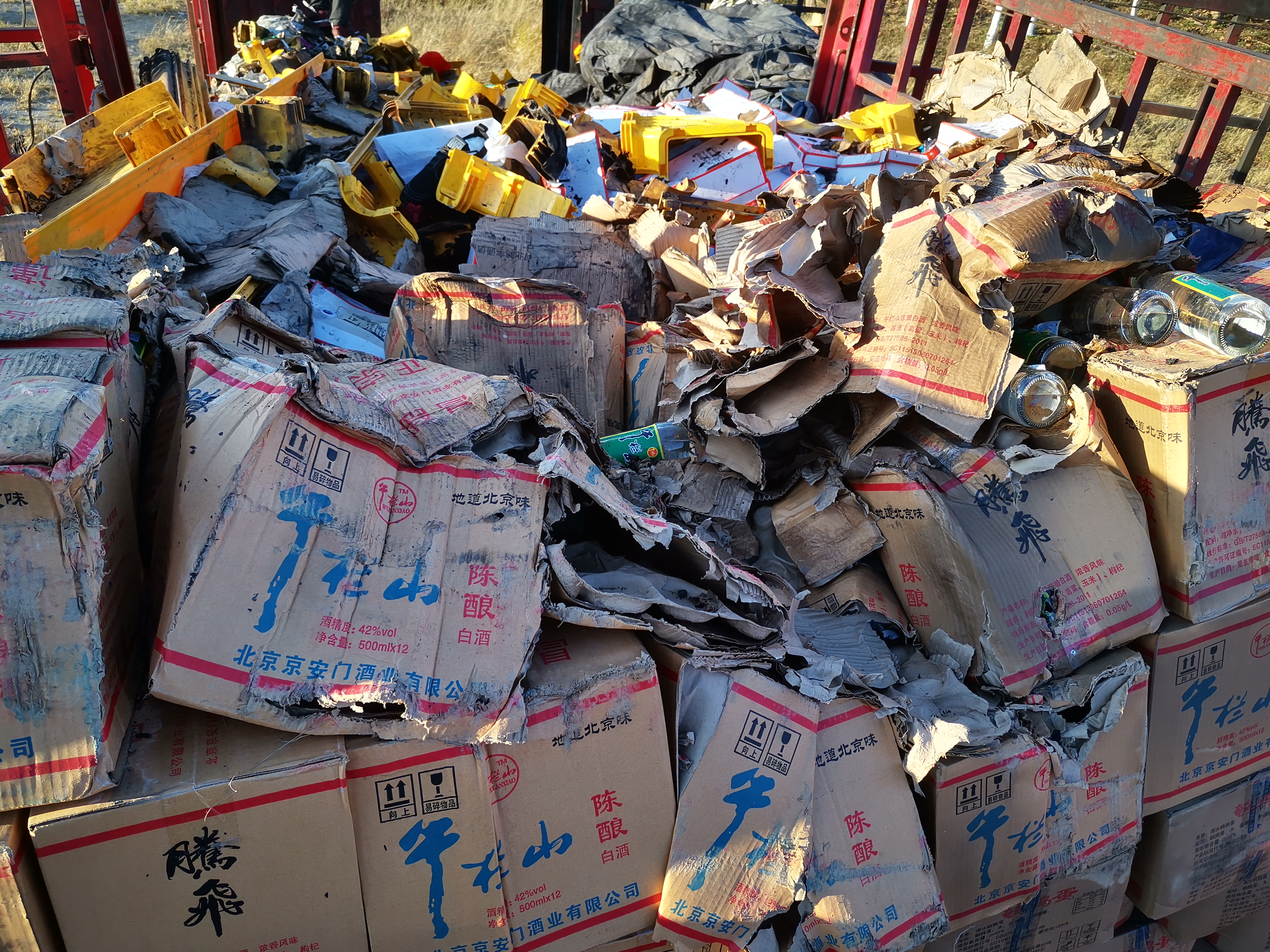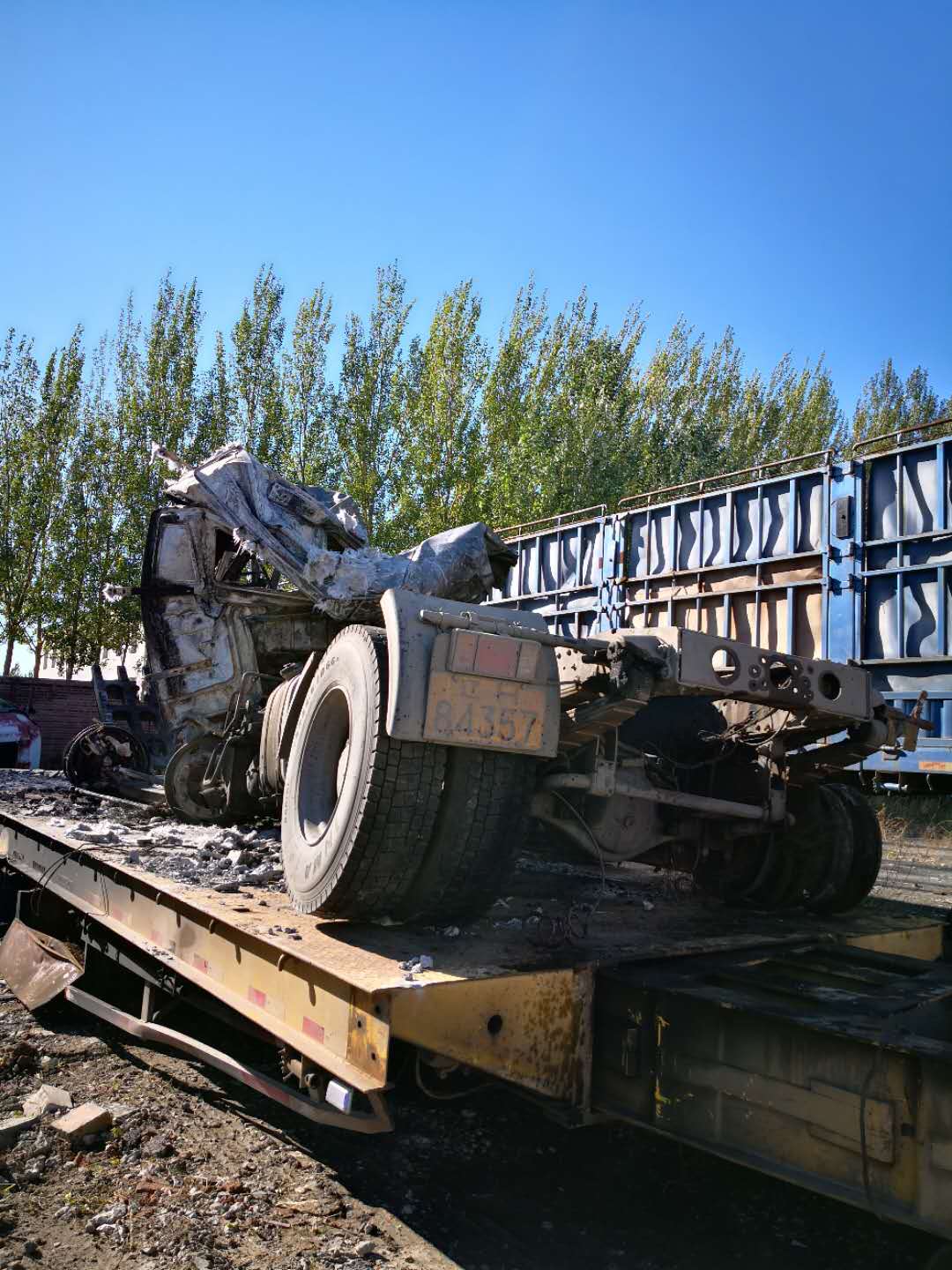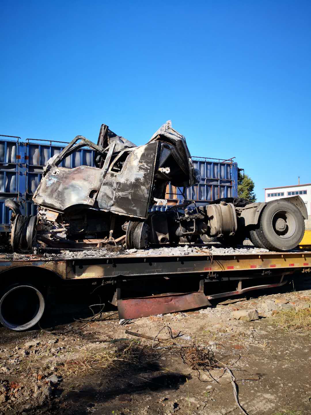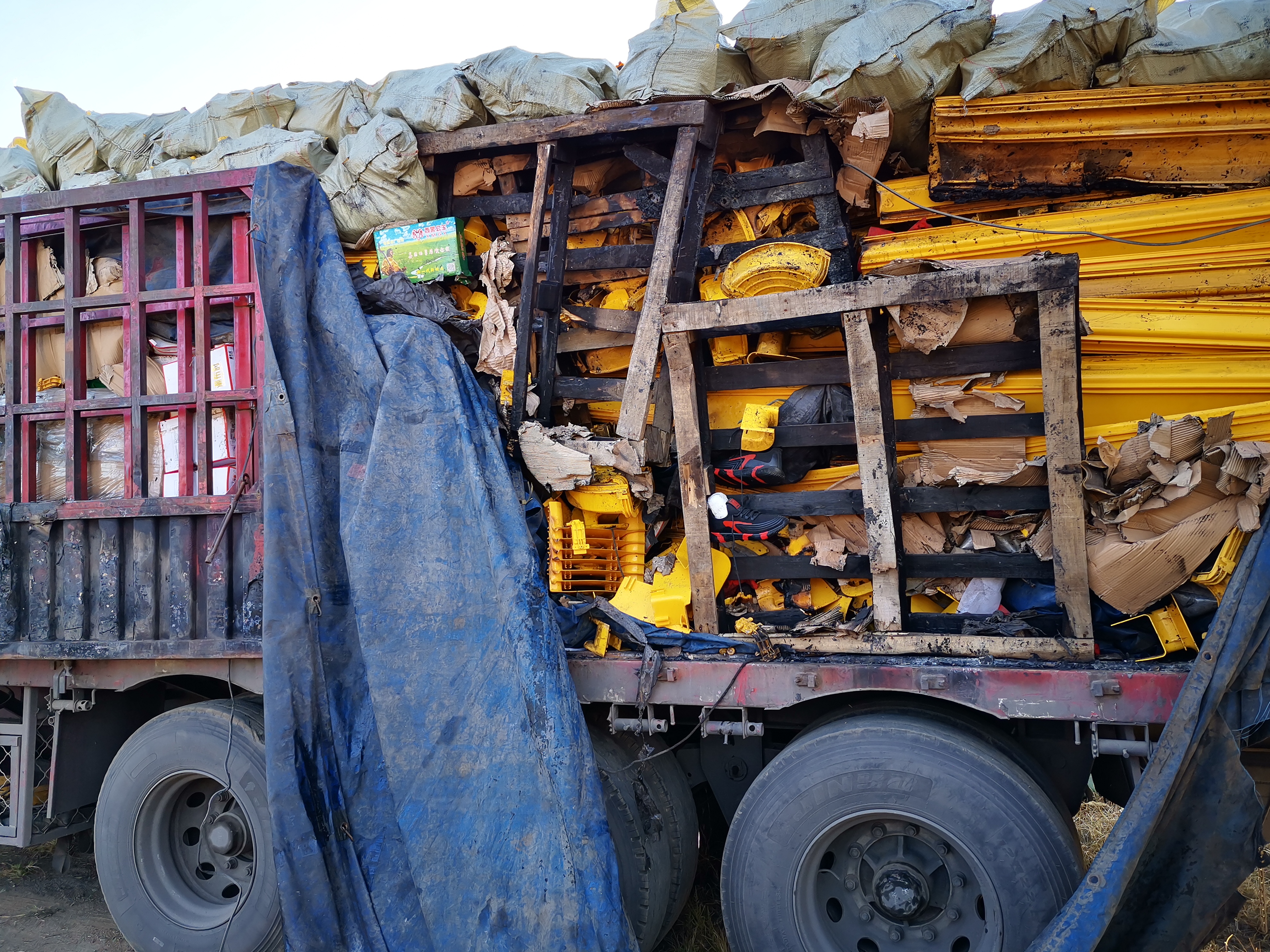 事故发生原因:追尾前车,车头着火引起后边货物着火受损